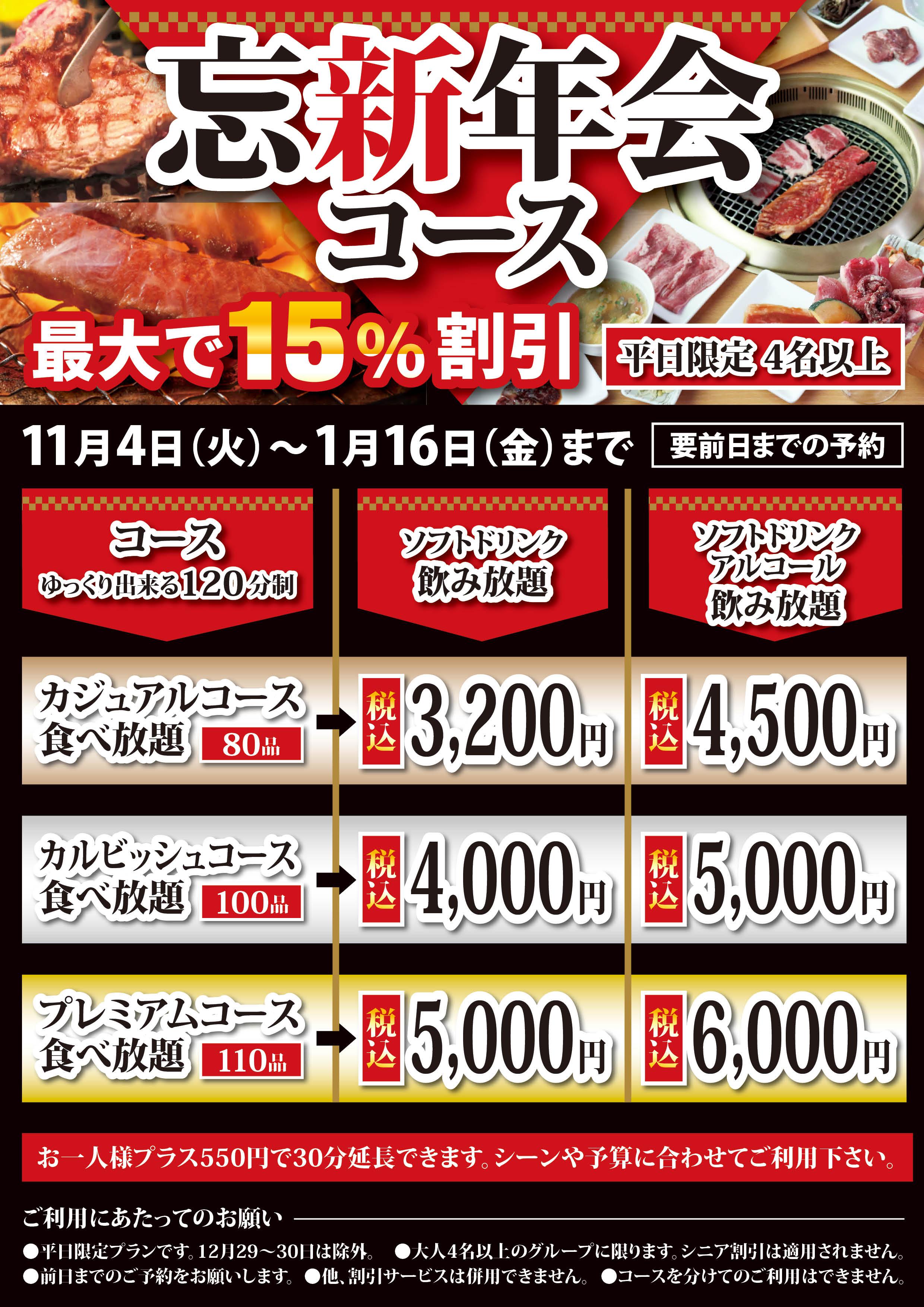 大変お得な忘新年会プランです!お客様のさまざまなシーンや予算に合わせてご利用くださいませ。